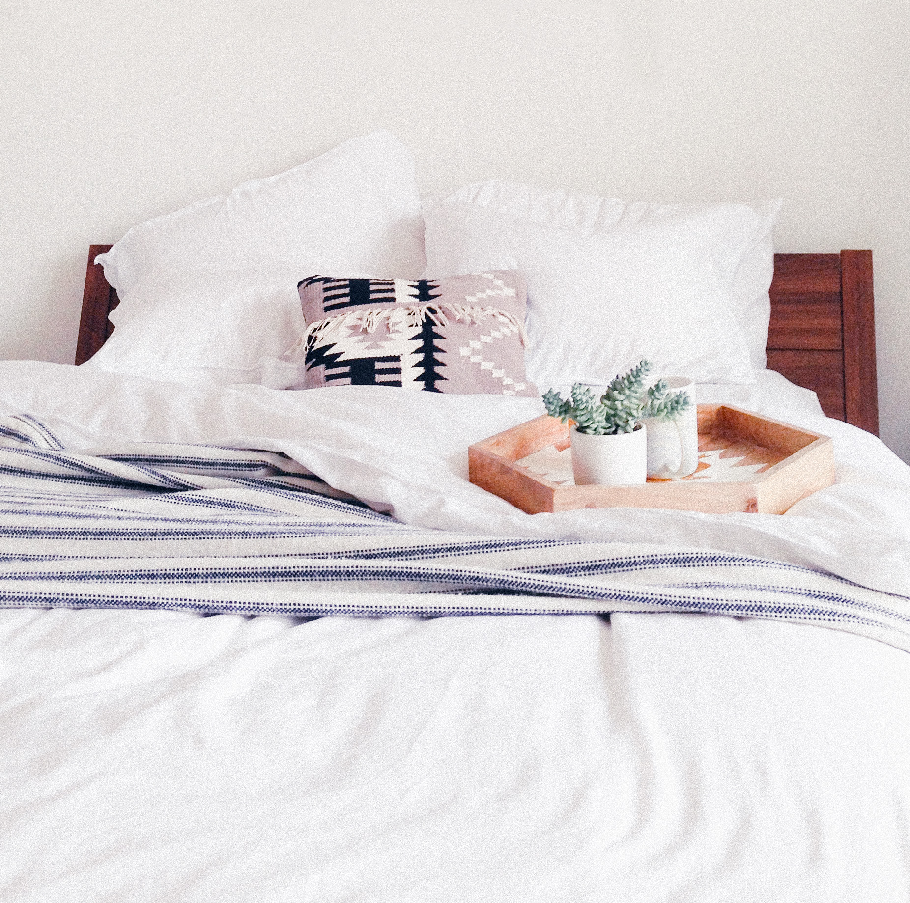 2.) Next time you change your linens, get rid of the flat/top sheet. Trust me when I say you will thank me for this tip when you are in a rush in the morning and you need to quickly make your bed. Plus, once again you are ridding yourself of the bulk of winter bedding.