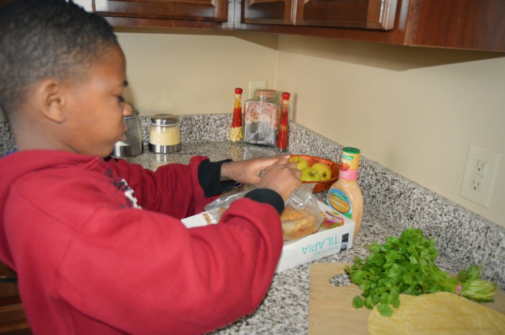 Let the fish cool for 5 minutes and have your family pitch in to assemble their tacos.